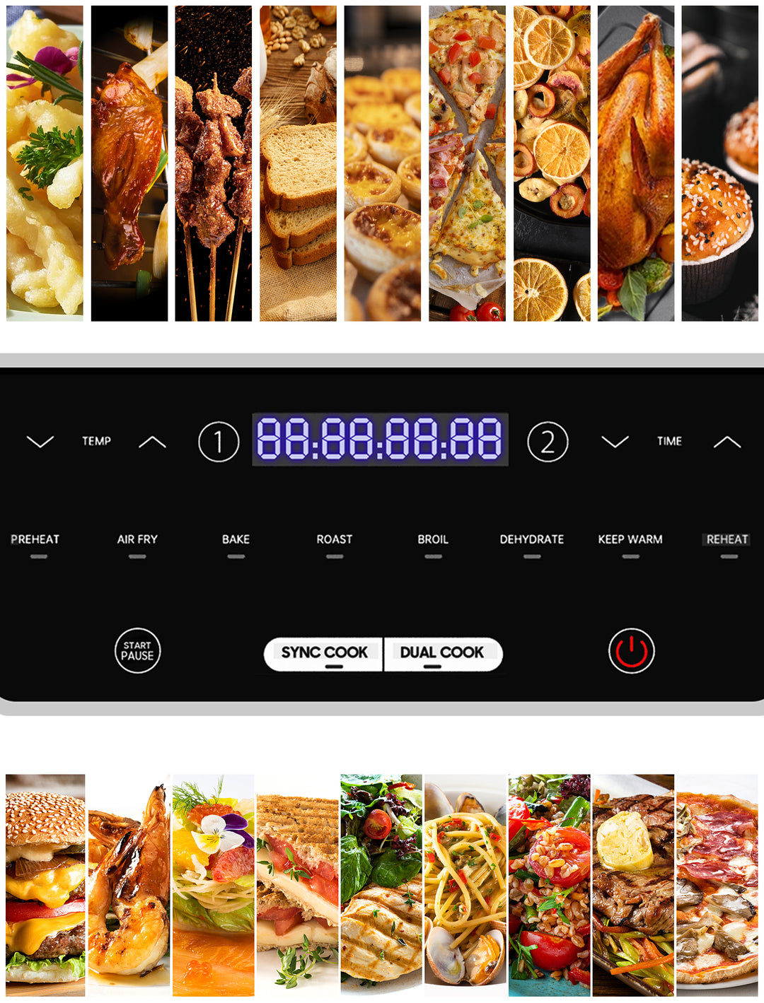 Elija entre freír al aire, asar, asar, hornear, recalentar, deshidratar y mantener caliente para crear deliciosas comidas, guarniciones y refrigerios.