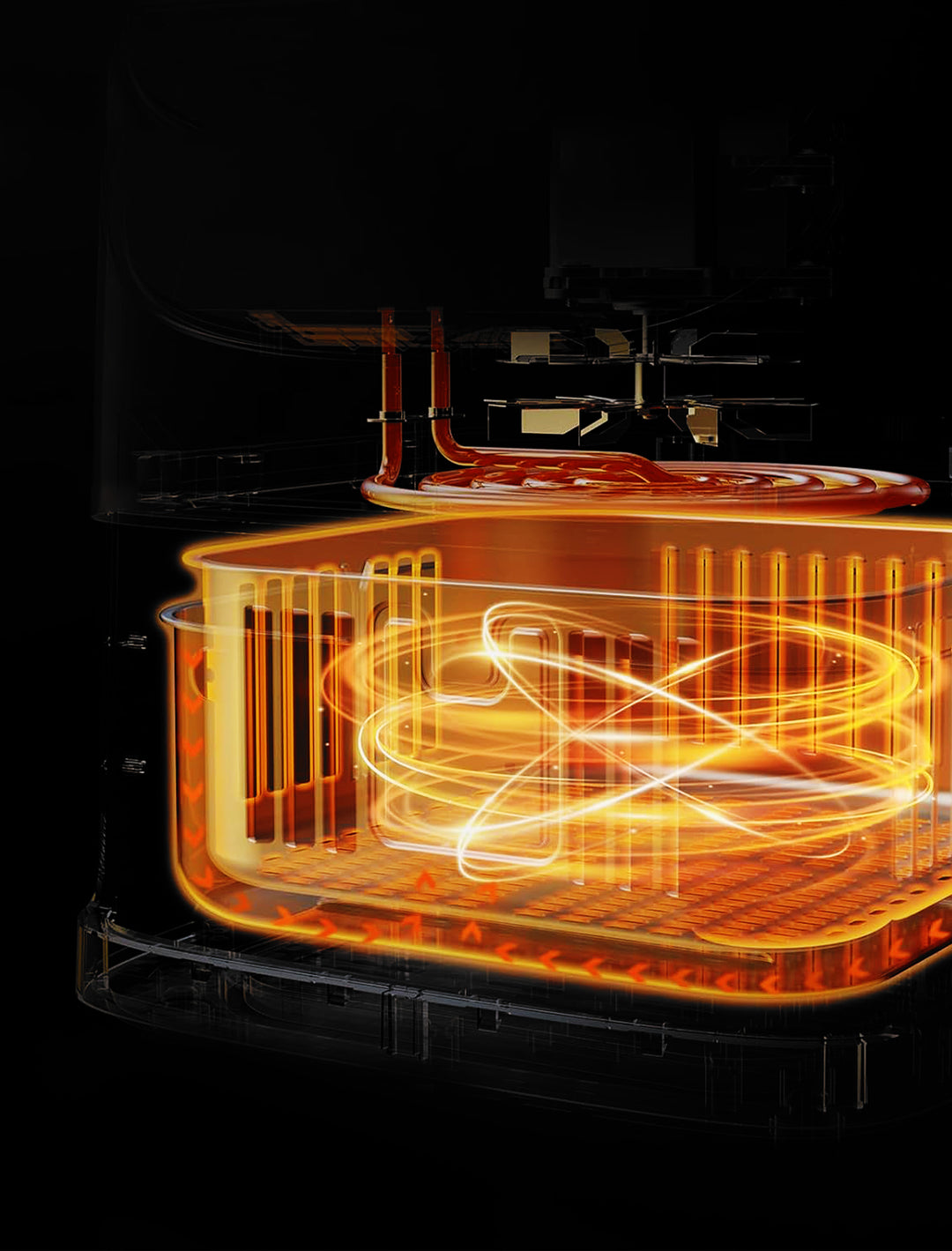 Tecnología de circulación de aire rápida de 360° para cocinar freidora con hasta un 85% menos de grasa que los métodos de fritura tradicionales, sin preocuparse por el peso