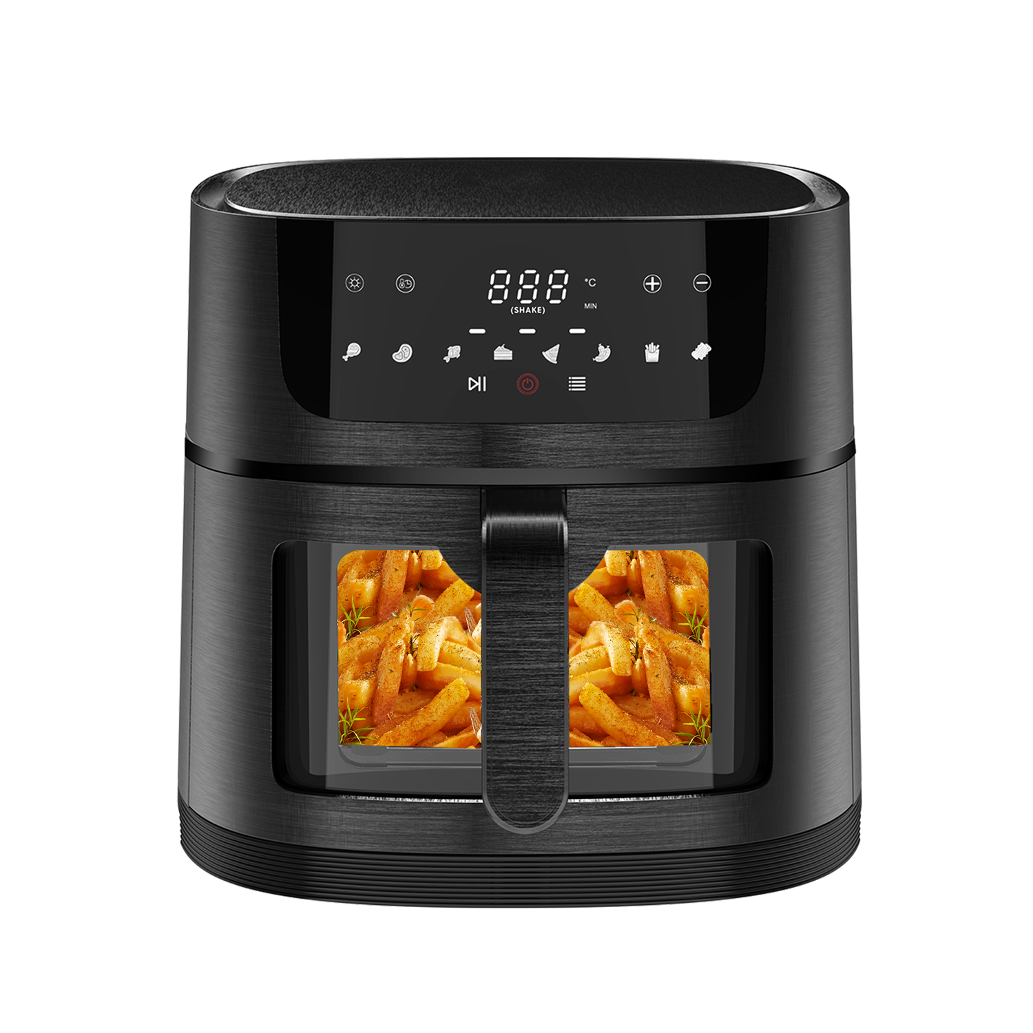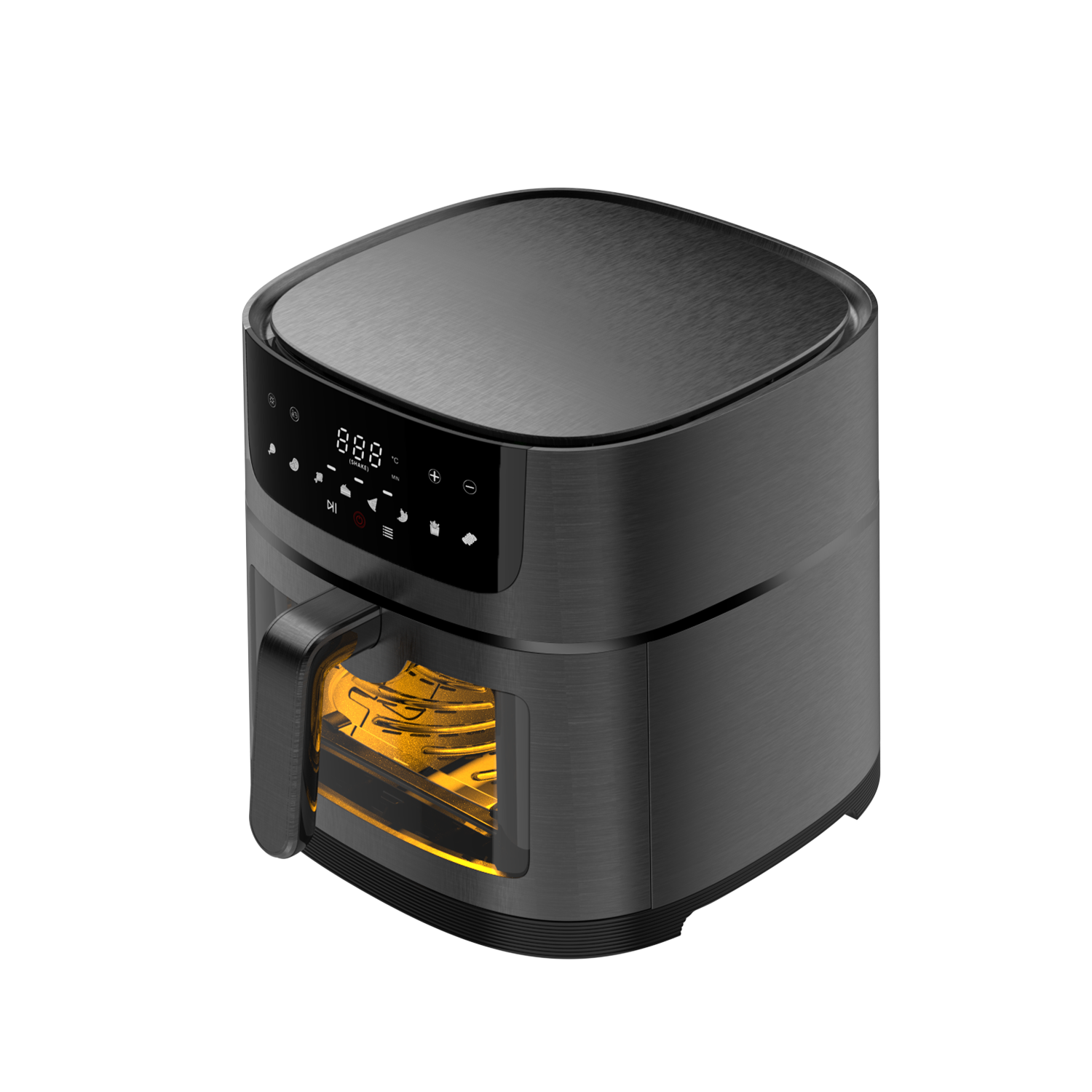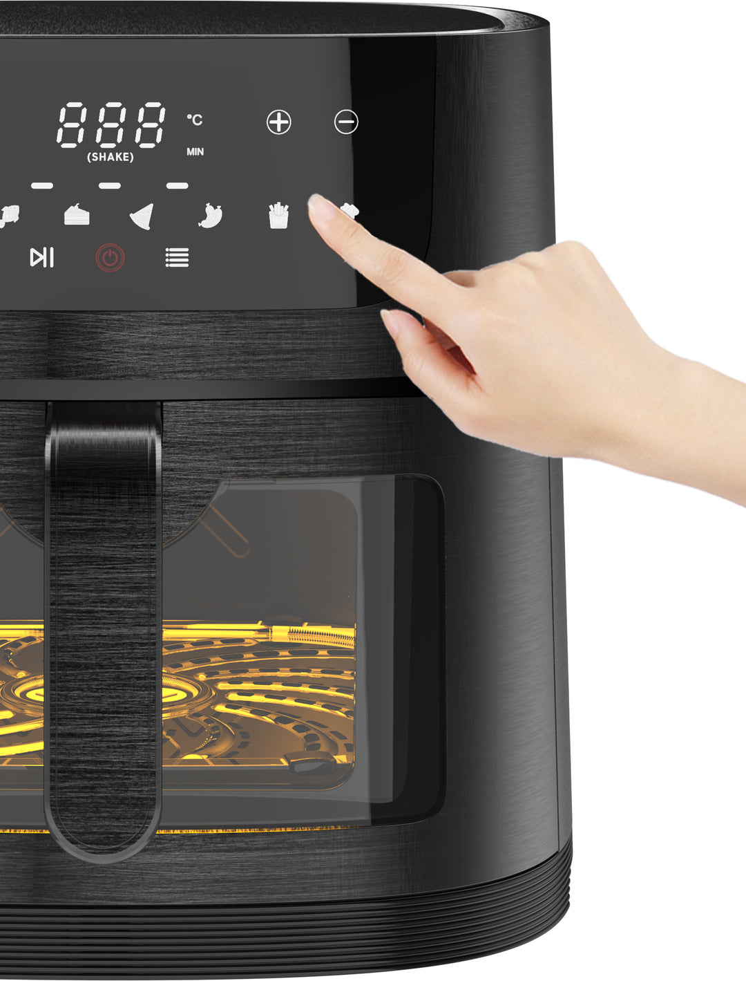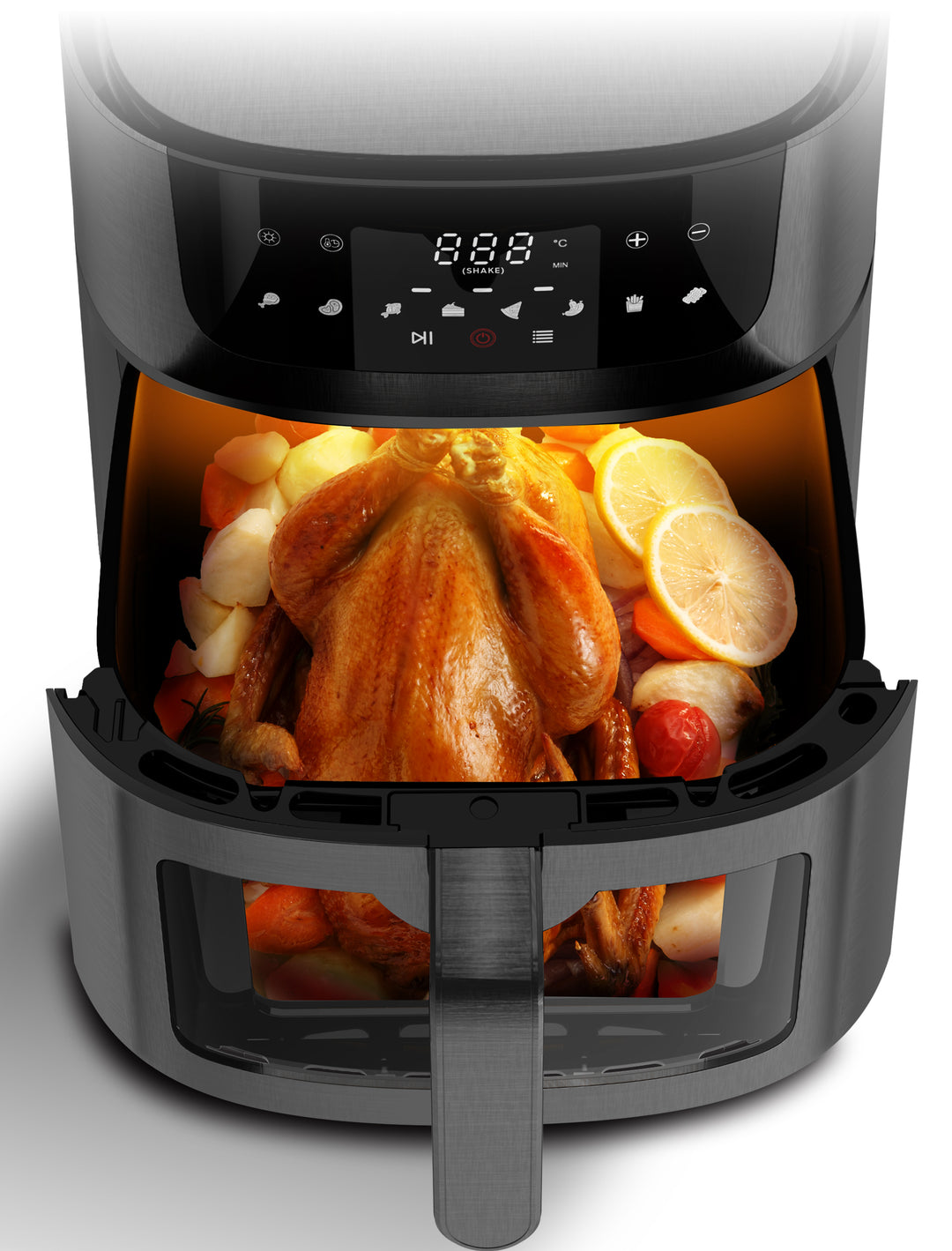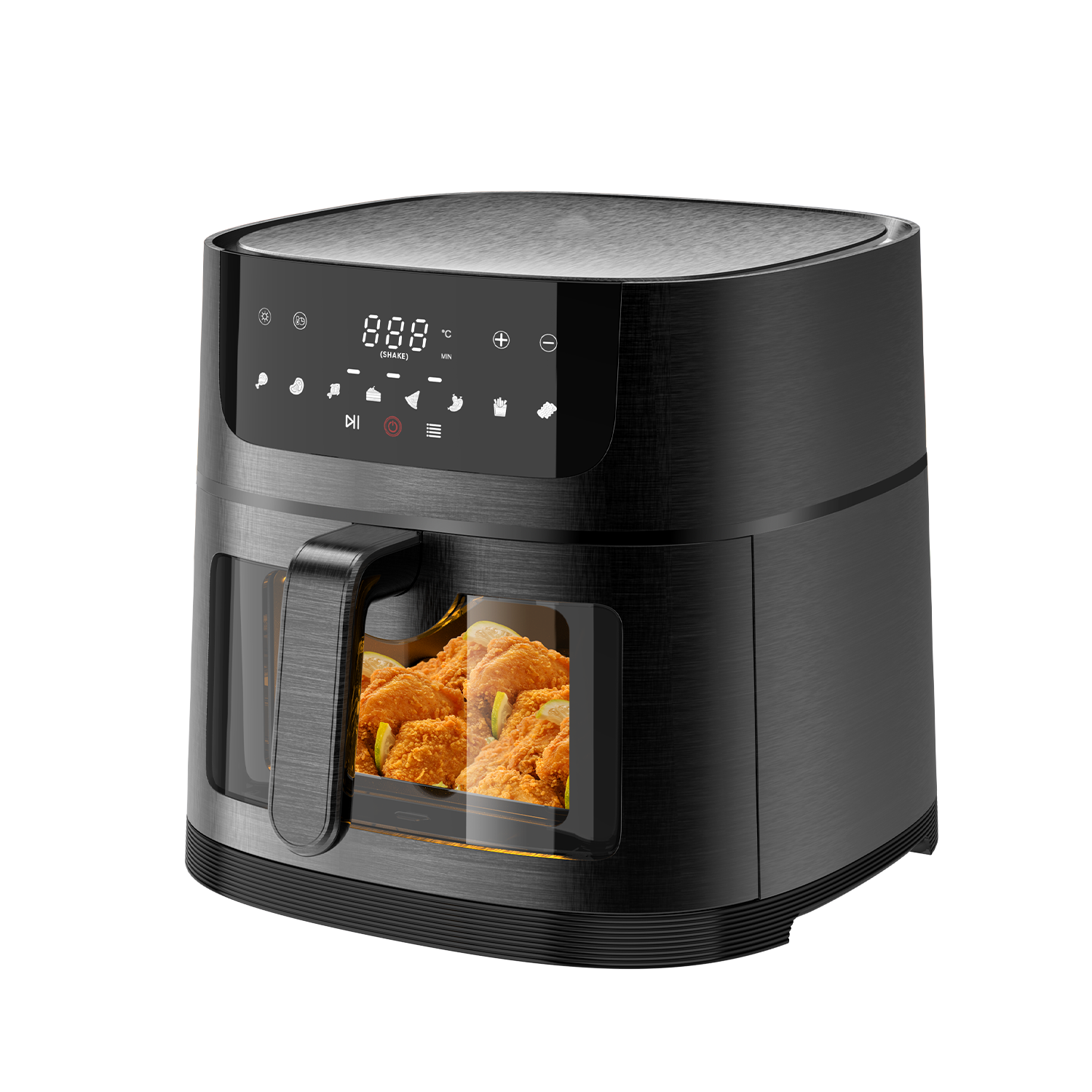- Gran ventana de visualización transparente: La air fryer incluye una gran ventana transparente con luz interior. Puede controlar el estado de cocción en tiempo real, eliminando el riesgo de cocción excesiva y garantizando que sus platos estén perfectamente cocinados al nivel deseado de textura crujiente