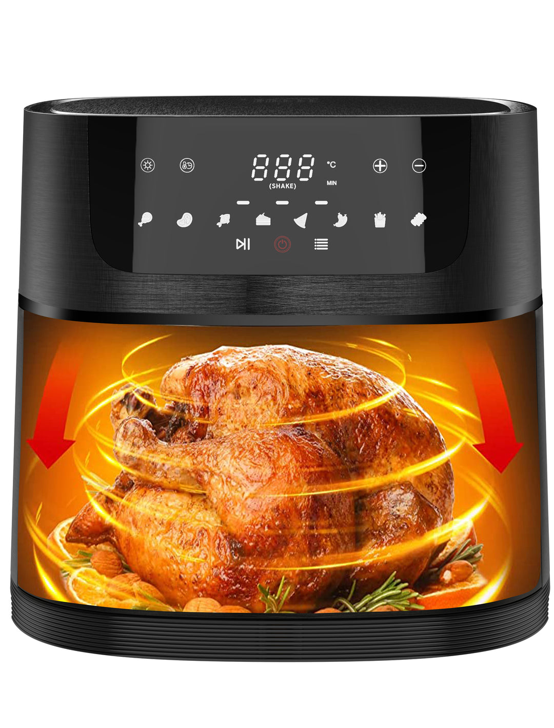 - Capacidad generosa de 9 litros: En esta freidora de aire grande con una capacidad de 9 litros cabe un pollo entero de una sola vez para su familia y amigos, lo que facilita la preparación de comidas. Desde patatas fritas crujientes hasta jugosas alitas de pollo, puedes preparar grandes cantidades de tus comidas favoritas sin esfuerzo. Perfecto para familias numerosas