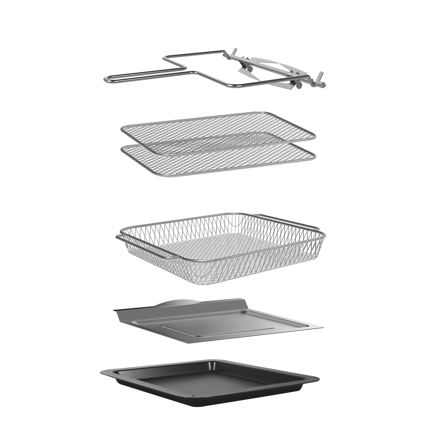 El horno freidora de aire incluye los accesorios. Todos los accesorios son antiadherentes y aptos para lavavajillas, lo que hace que la limpieza sea fácil y rápida.