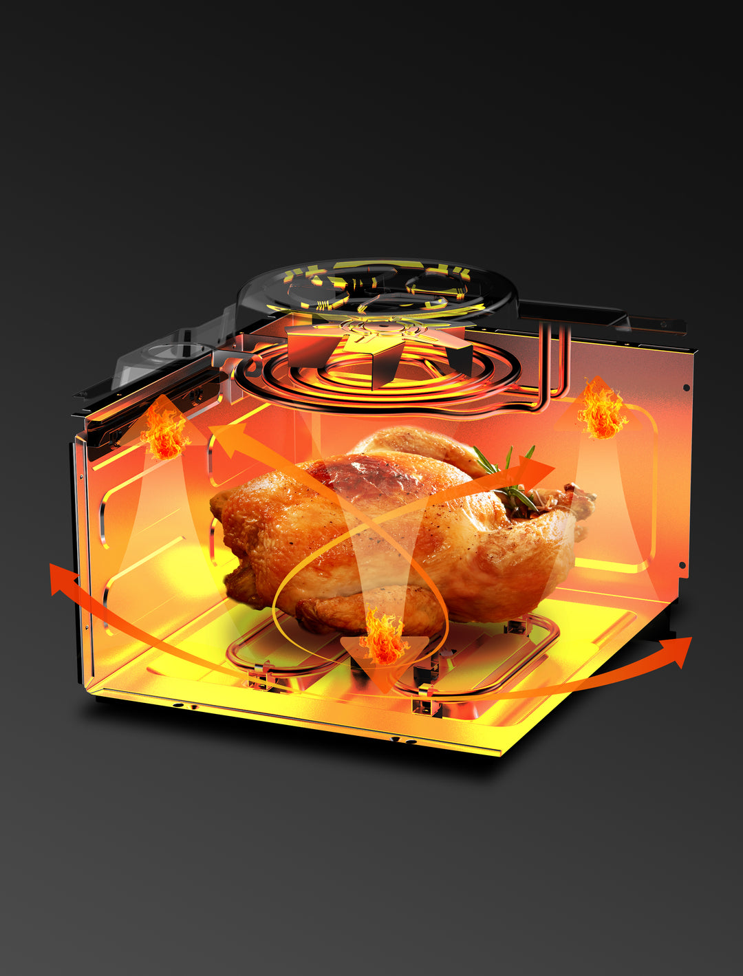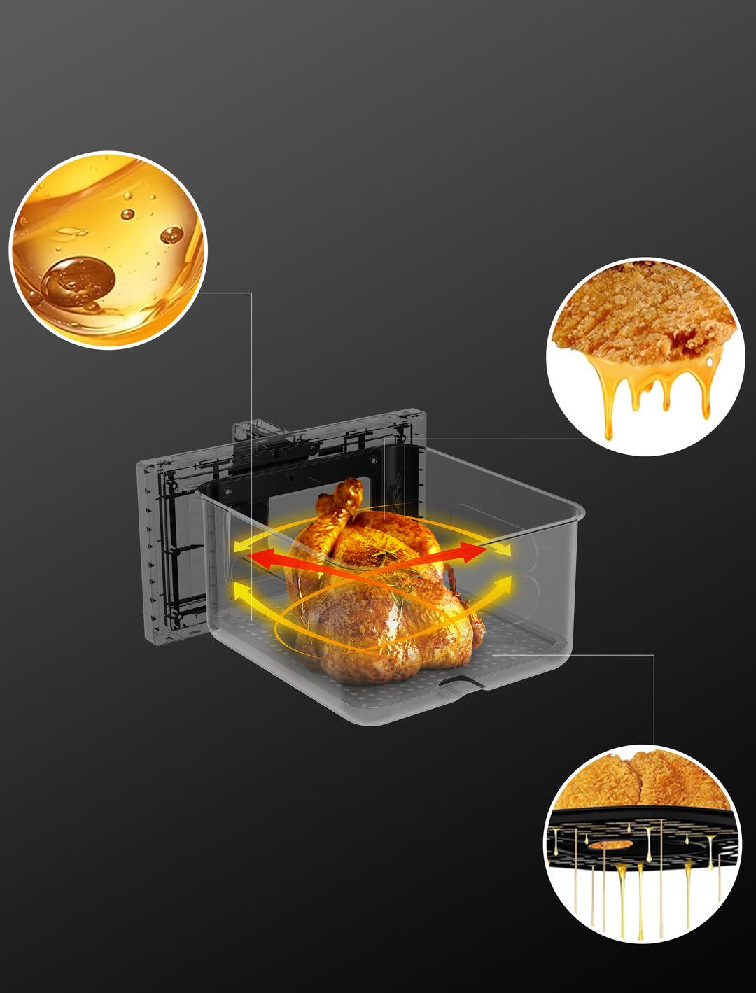 - Circulation Flujo de aire rápido de 360°: la alta potencia de 2100 W y la distribución equilibrada del calor garantizan que sus alimentos se cocinen a la perfección, dándoles el mejor sabor posible