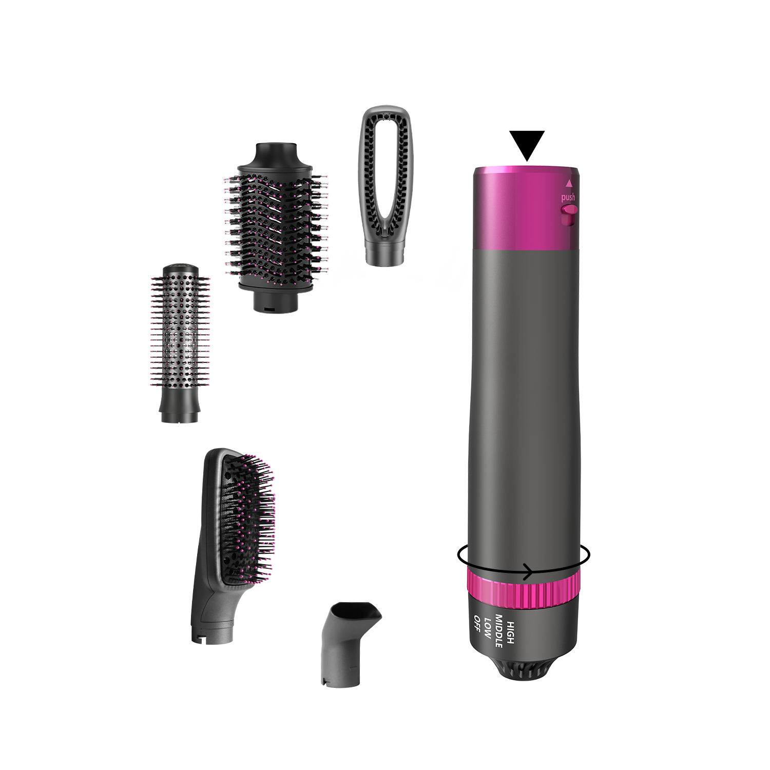 • Secador de Aire Caliente 5 en 1: La combinación perfecta de secador de pelo, rizador, plancha de pelo y peine masajeador. Cambie entre los 5 accesorios a voluntad y, ya sea que tenga cabello largo o corto, el cepillo para peinar puede crear rápidamente el peinado que desea y ahorrarle tiempo