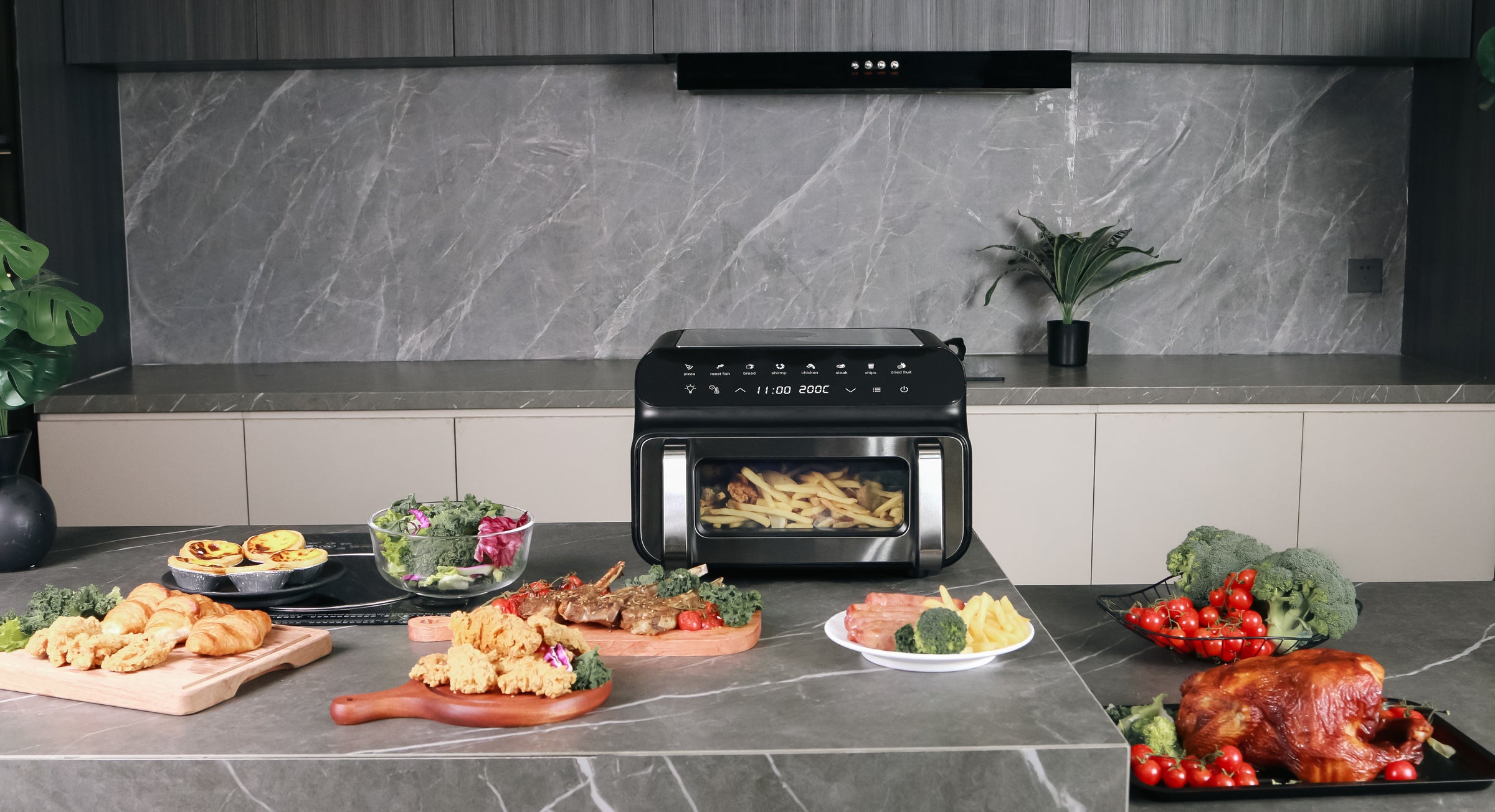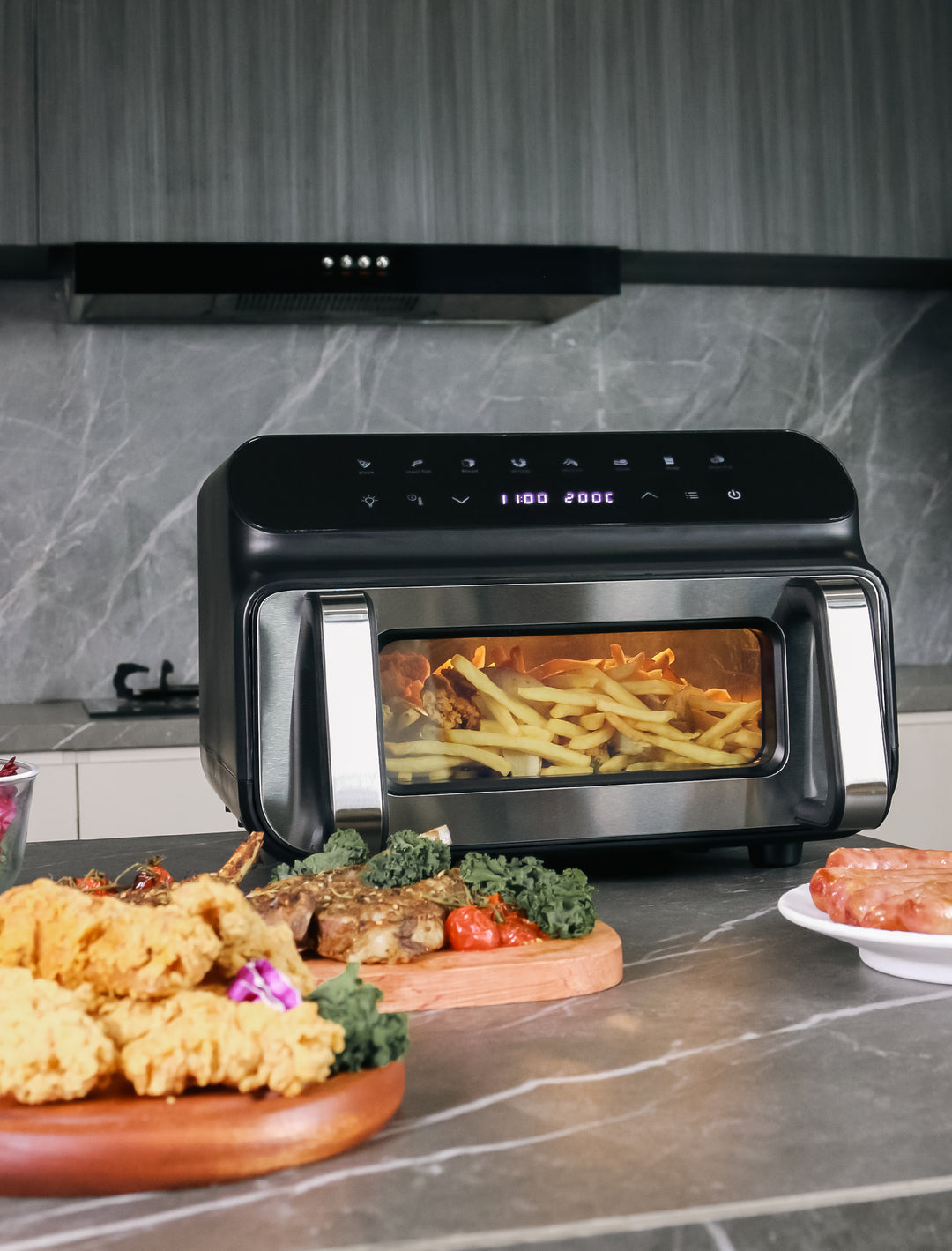 - Temperatura Ajustable: Con un rango de 50 a 230 grados, esta air fryer te permite cocinar una amplia variedad de alimentos, ajustando la temperatura a tu gusto para cada receta