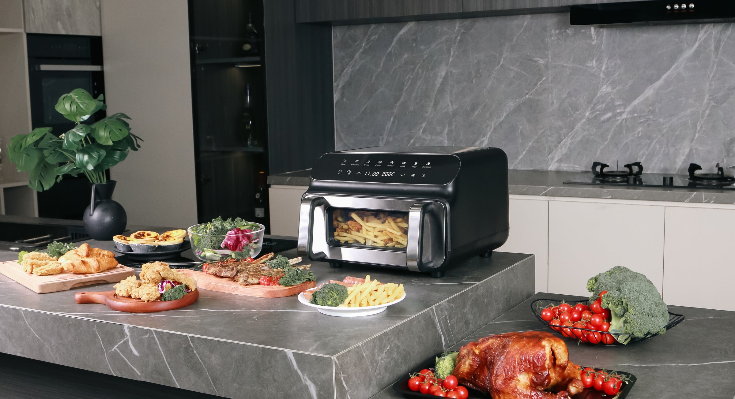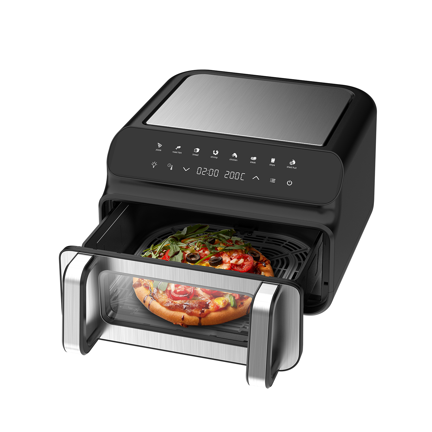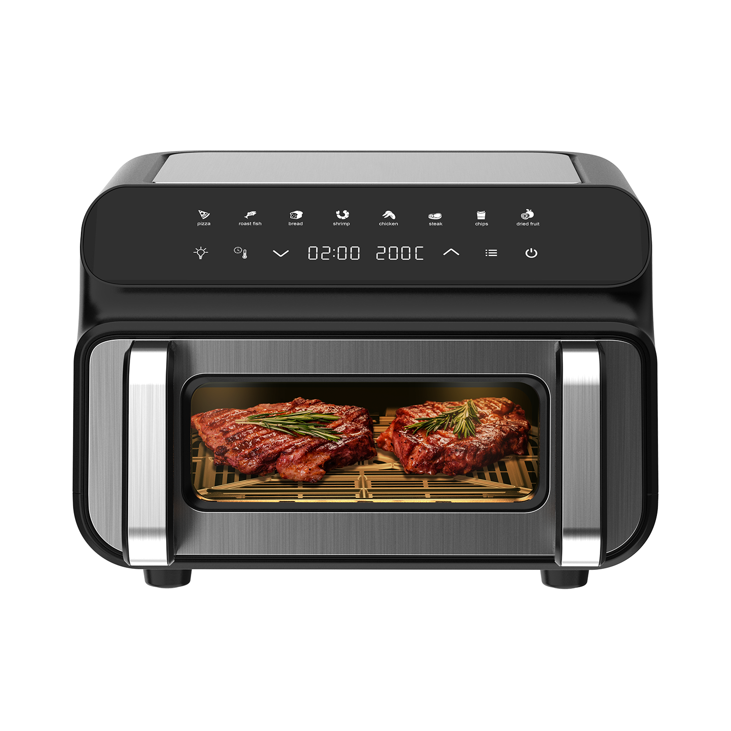 - Potencia de 2000W: Gran potencia para un calentamiento rápido y temperaturas de cocción constantes. Con la freidora de aire Iceagle, estás listo para cualquier comida.