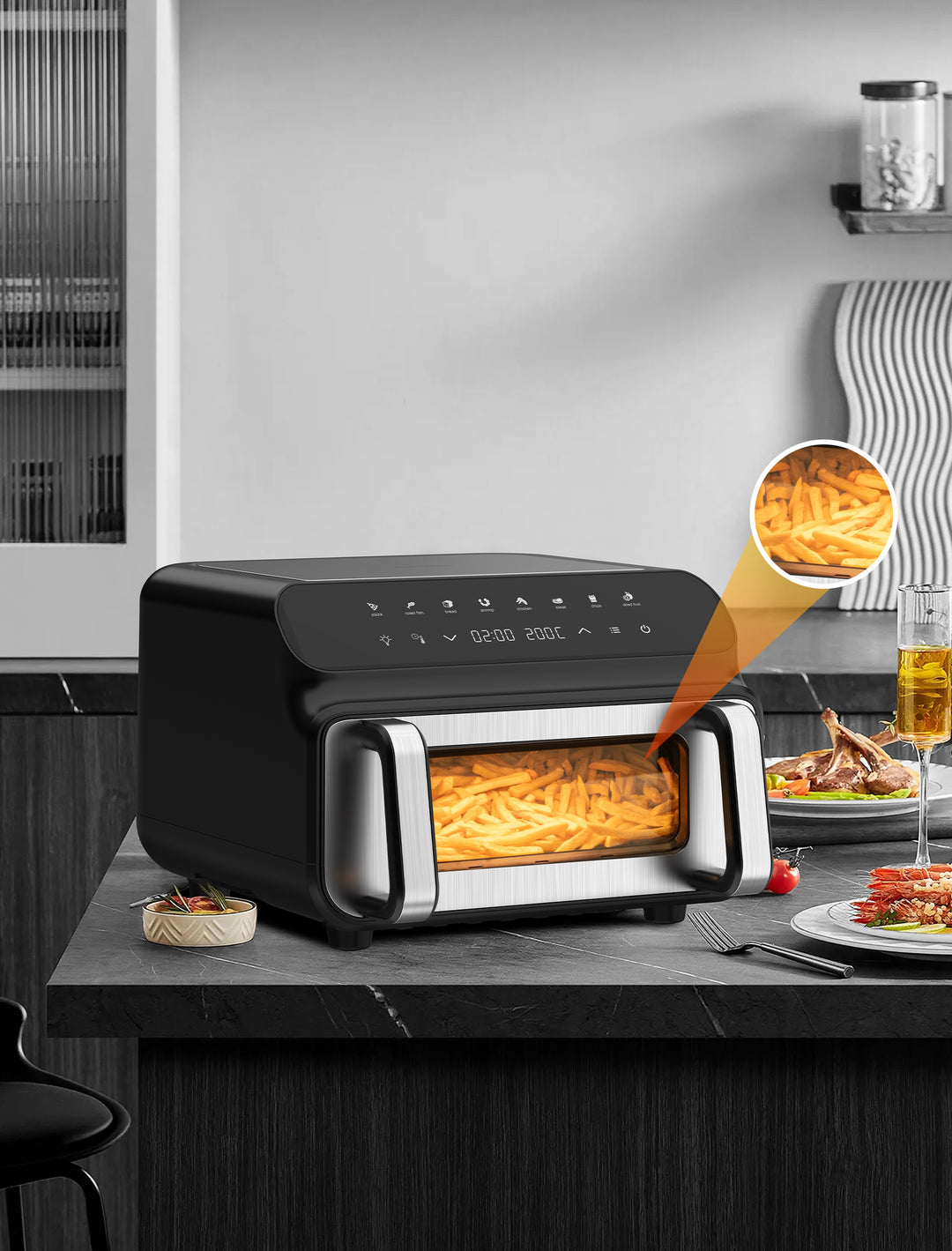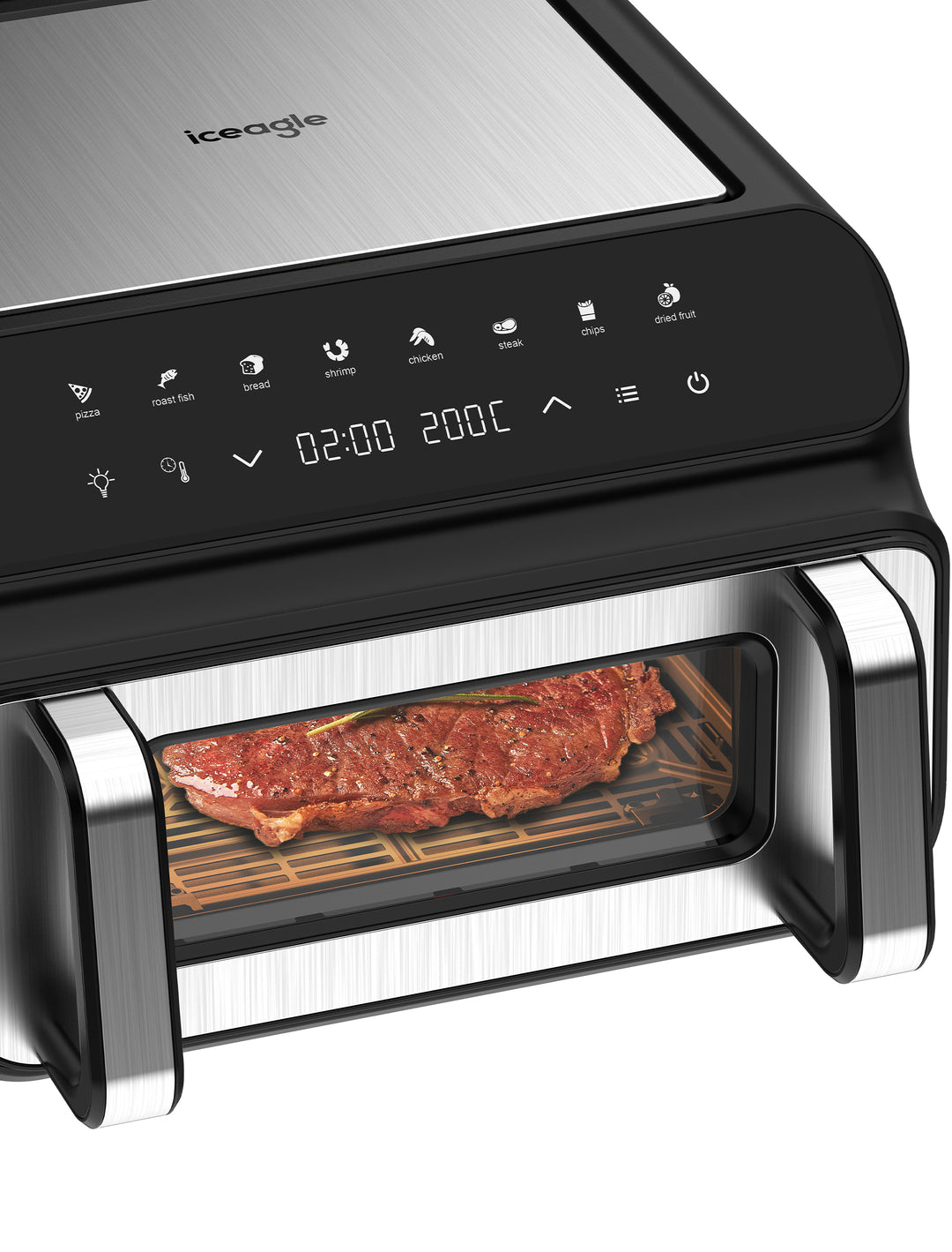 - Gran ventana de visualización: Nunca pierdas de vista el progreso de cocción. Con la gran ventana de visualización de la freidora de aire Iceagle, puedes controlar todo sin pérdida de calor.