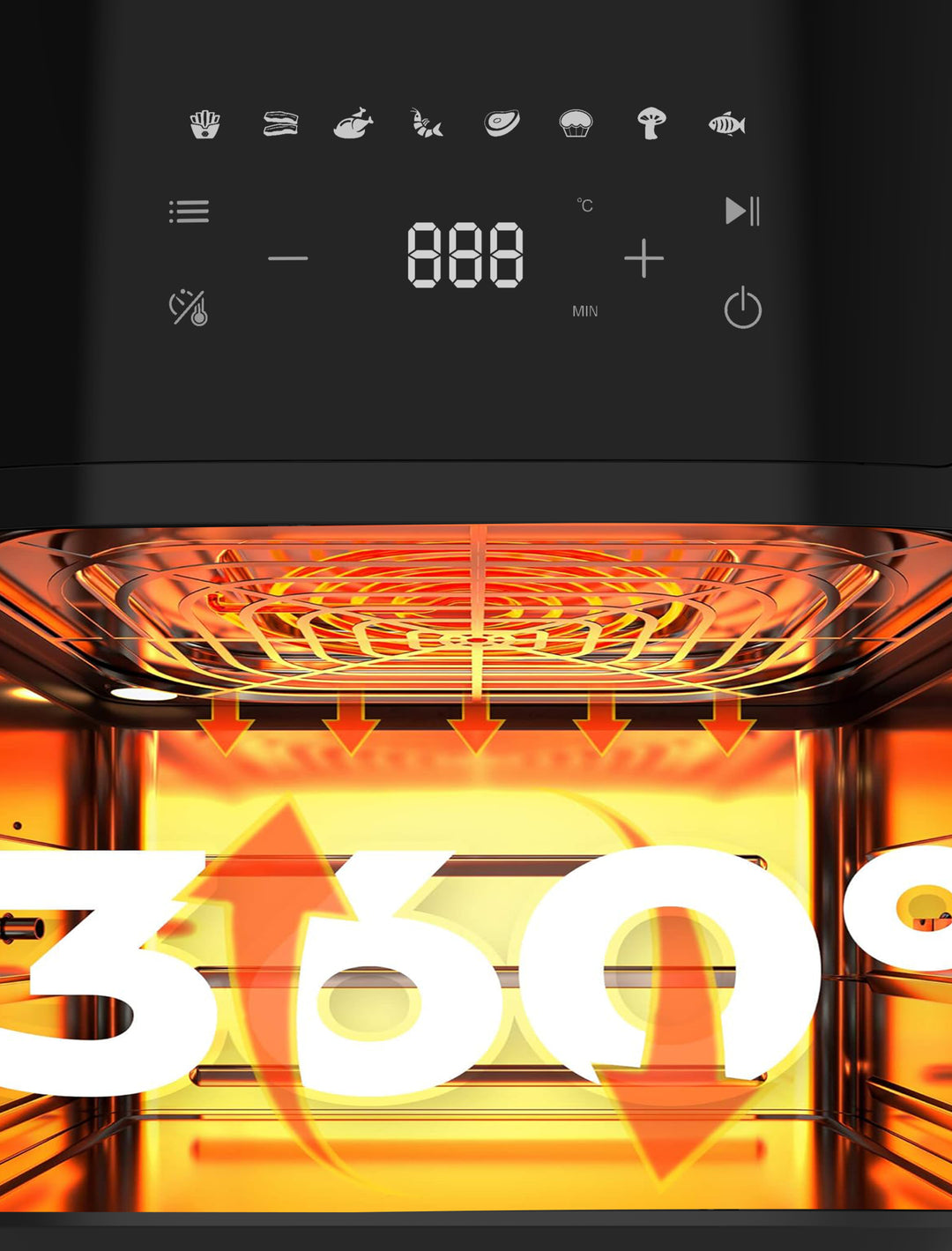 • 8 funciones de cocción: elija entre 8 funciones de cocción preprogramadas para pizza, pescado frito, pan, pollo, bistec, papas fritas, frutos secos y más. Versatilidad y comodidad con solo tocar un botón.