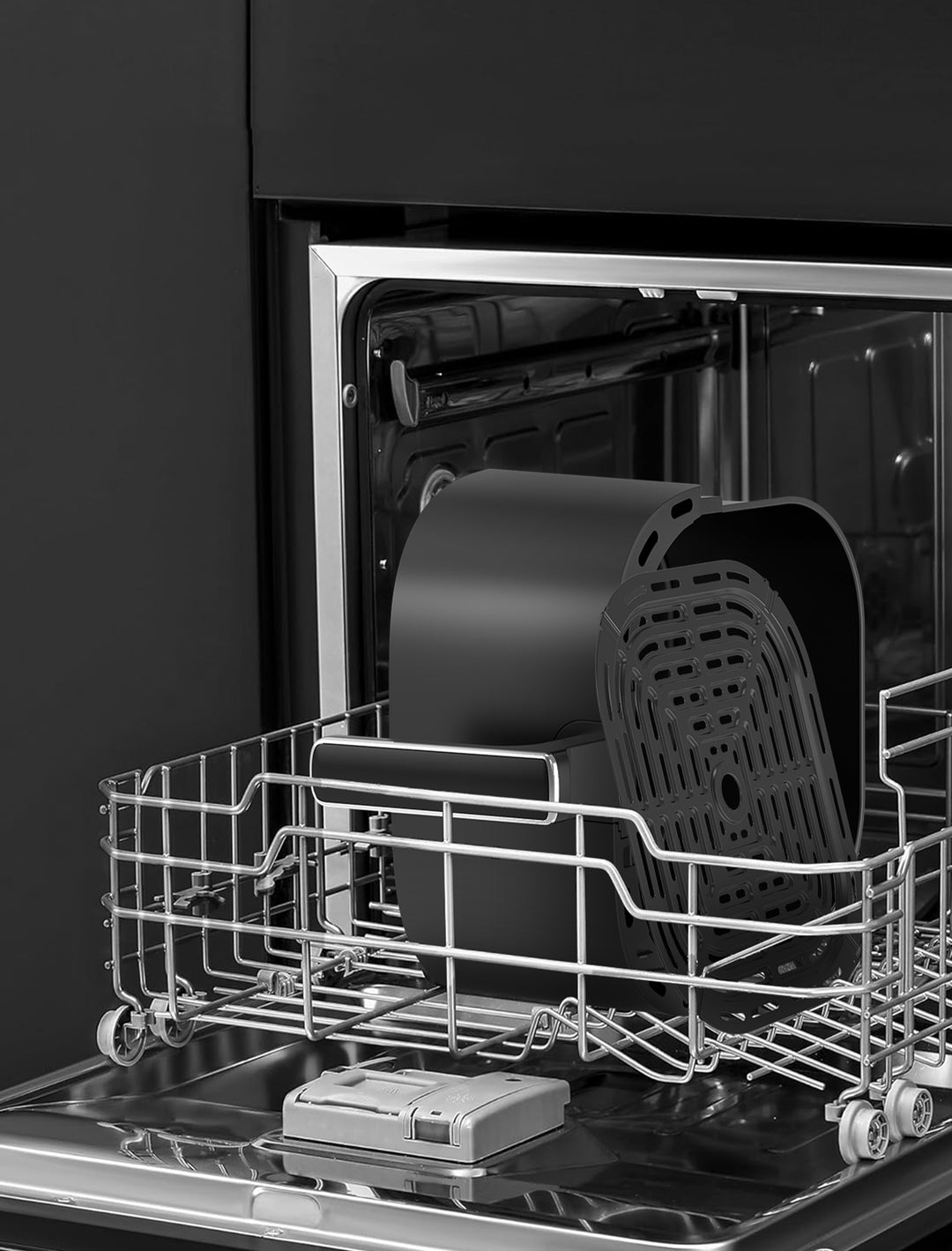 La cesta y los platos para freír tienen un revestimiento antiadherente y se pueden lavar en el lavavajillas, lo que facilita la limpieza.