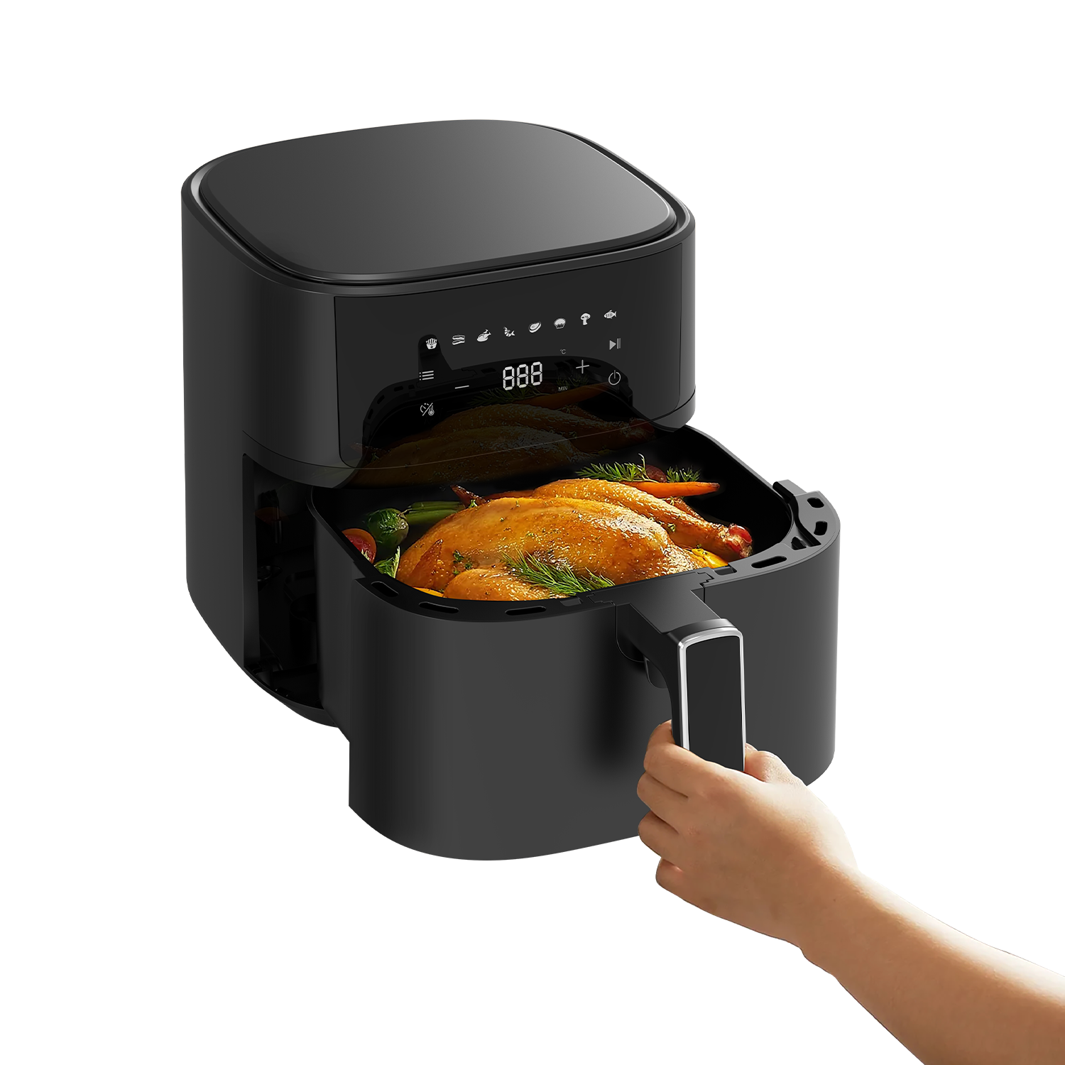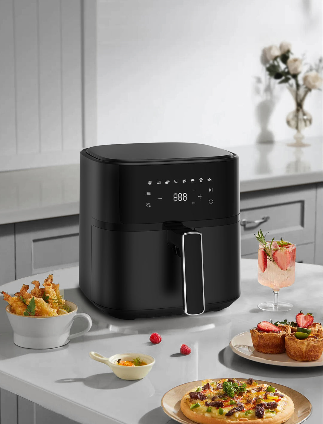 • Pantalla Táctil LED: Intuitiva y fácil de usar, la pantalla táctil LED de nuestra airfryer te permite controlar tu cocina con solo tocar un botón