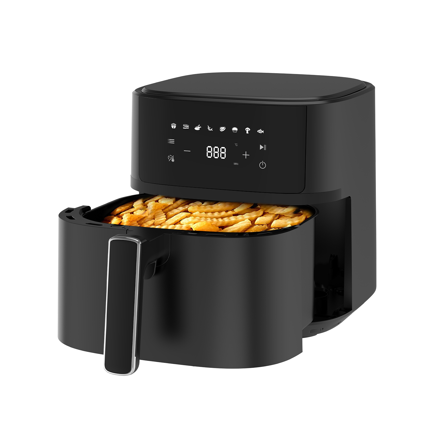 Elija entre 8 funciones de cocción preprogramadas para pizza, pescado frito, pan, pollo, bistec, patatas fritas, frutos secos y más. Versatilidad y comodidad con solo tocar un botón.