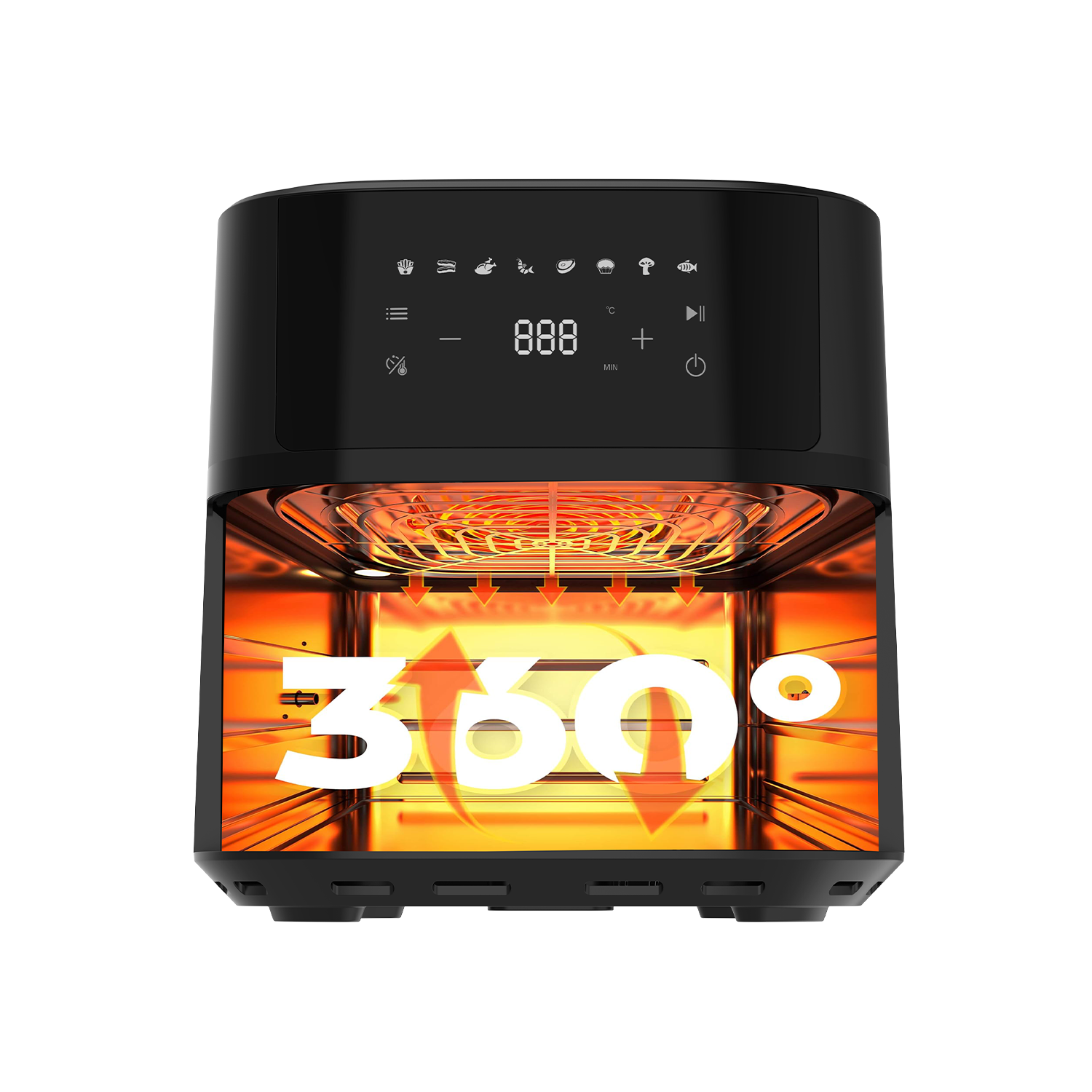 Tecnología de circulación de aire rápida de 360° para cocinar freidora con hasta un 85% menos de grasa que los métodos de fritura tradicionales, sin preocuparse por el peso