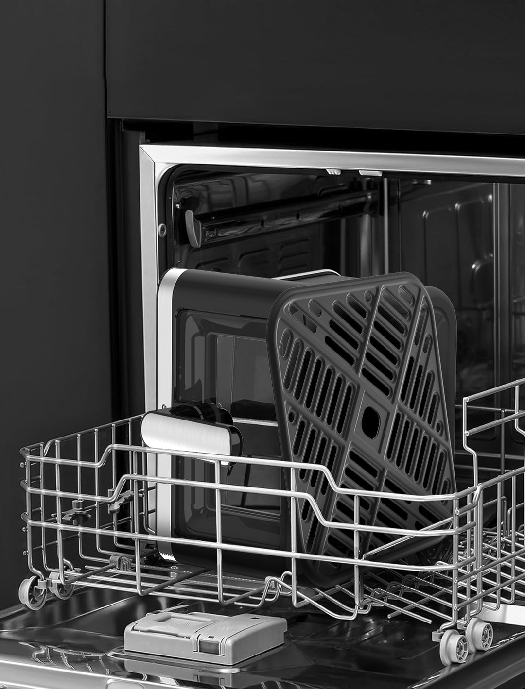 Fácil de limpiar: Ahorra tiempo en la limpieza gracias a nuestra cesta para freír antiadherente y a nuestras placas aptas para lavavajillas.