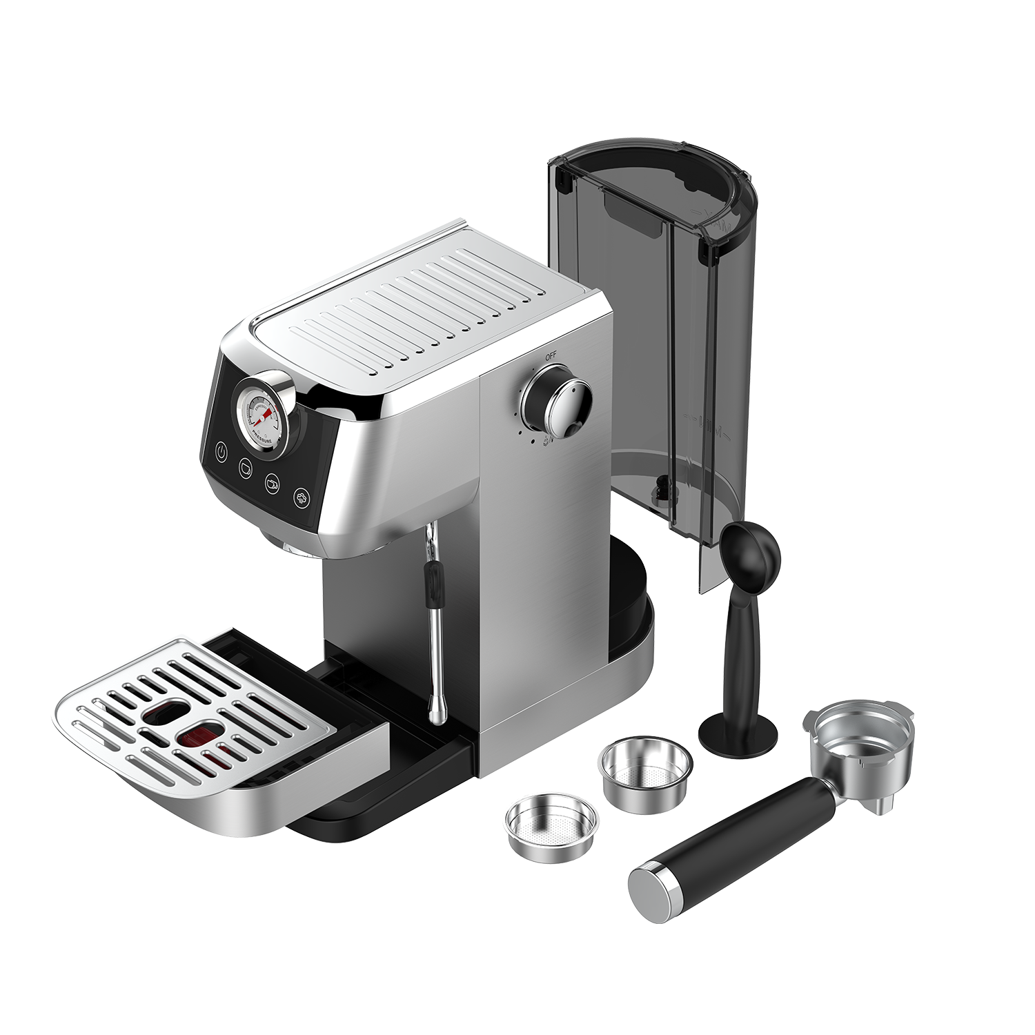 - Depósito extraíble e indicador de nivel de agua: El gran depósito de agua de 1,3 l extraíble y fácil de llenar y la bandeja de goteo con indicador de nivel de agua hacen que el uso diario de esta máquina de espresso profesional sea más práctico